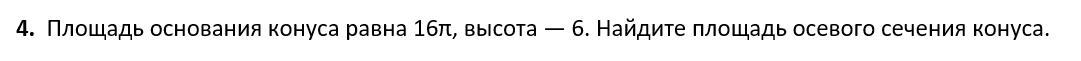 Осевое сечение конуса - равнобедренный треугольник с высотой 6 и основанием - диаметром основания конуса 4.