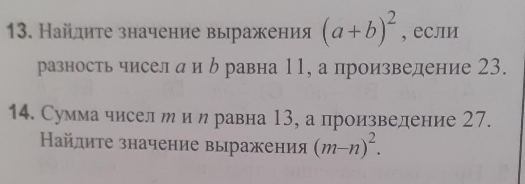 (m+n)²=m²+n²+2mn=13²; 2mn=2×27=54