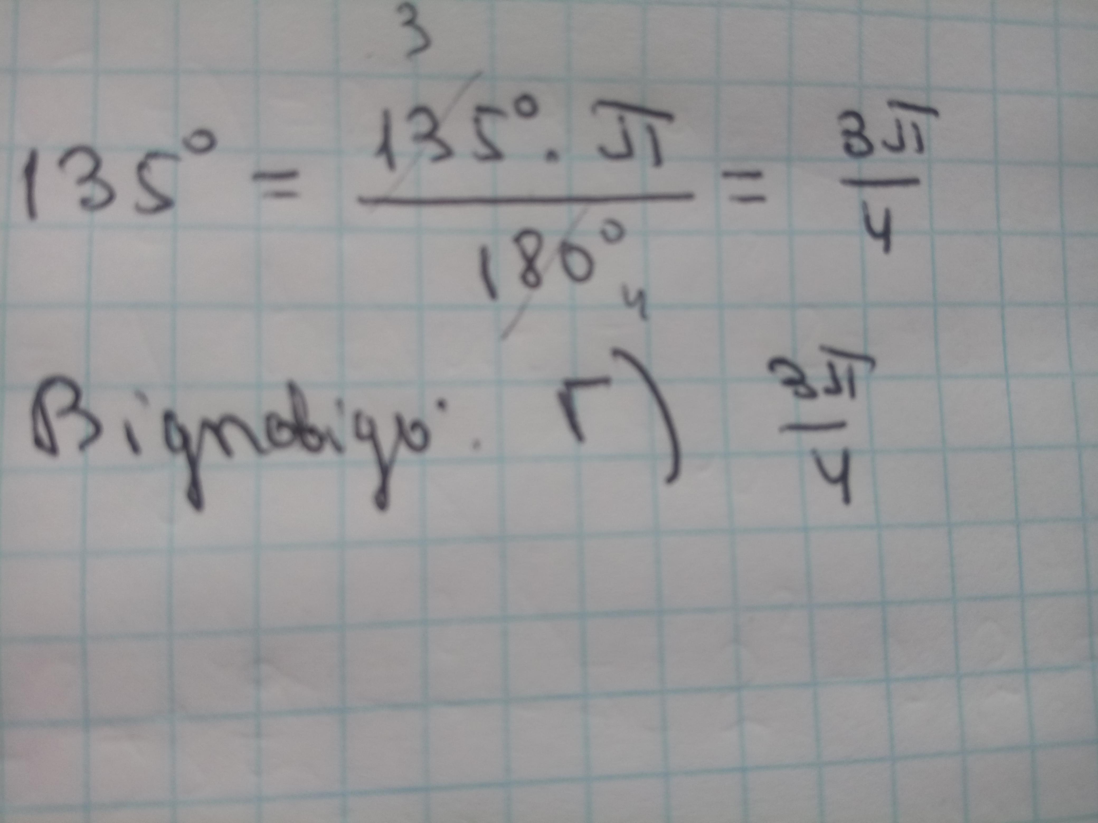 Знайдіть радіанну міру кута, градусна міра якого становить 135°