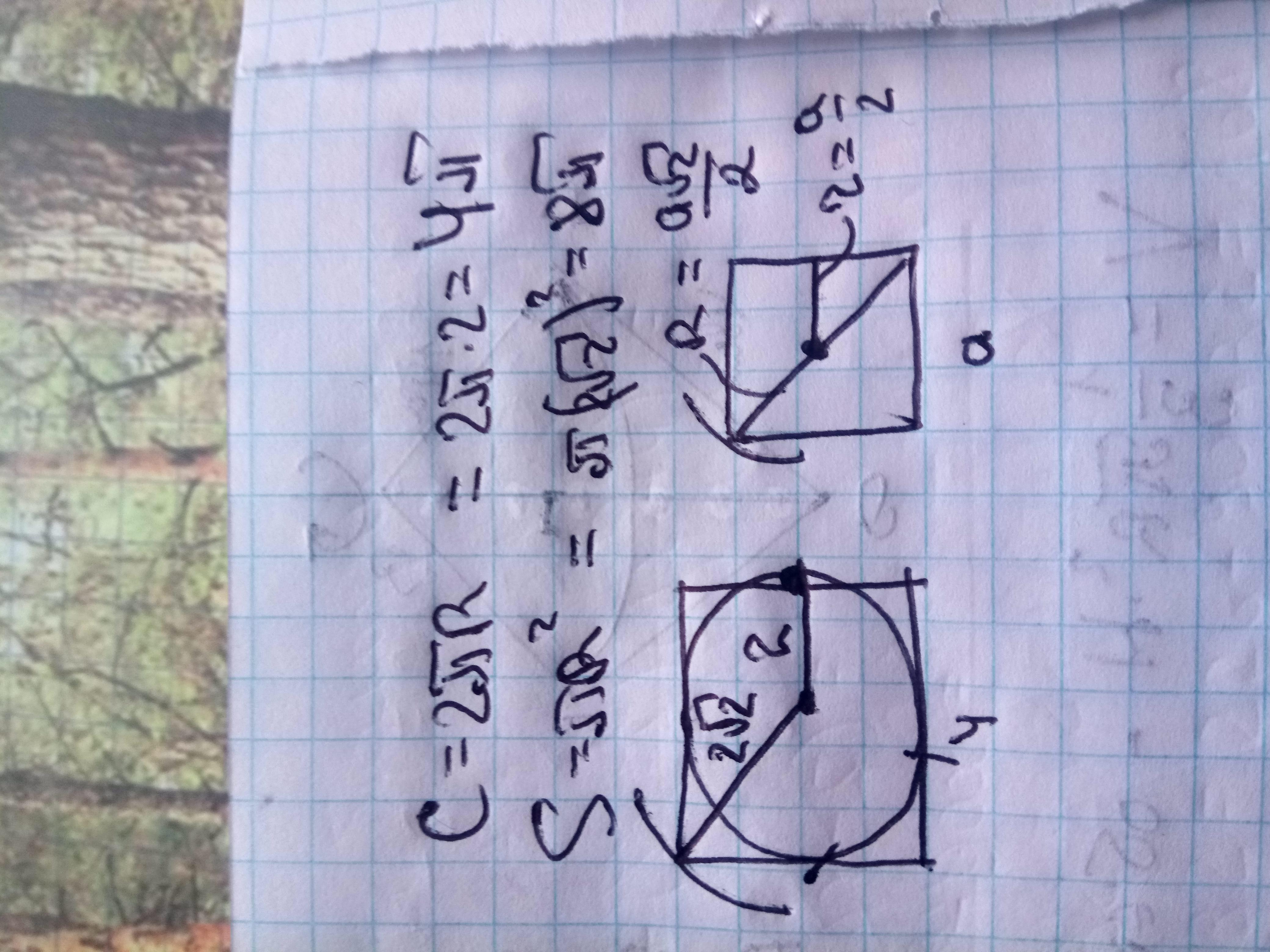 Найдите длину окружности, вписанной в квадрат, и площадь круга, описанного около него, если сторона квадрата равна 4.