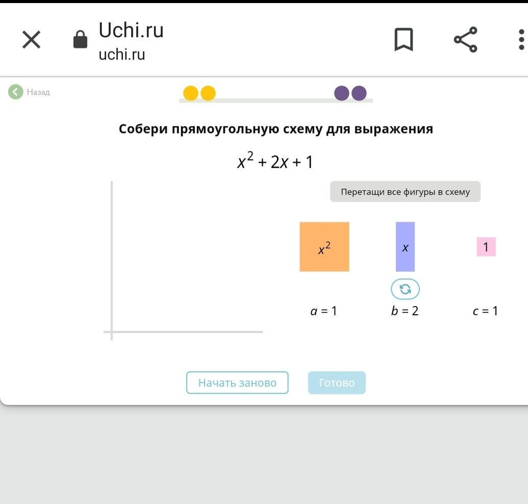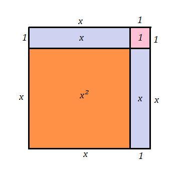 Оранжевый прямоугольник имеет площадь, равную квадратных единиц , оба голубых прямоугольника имеют площадь, равную по