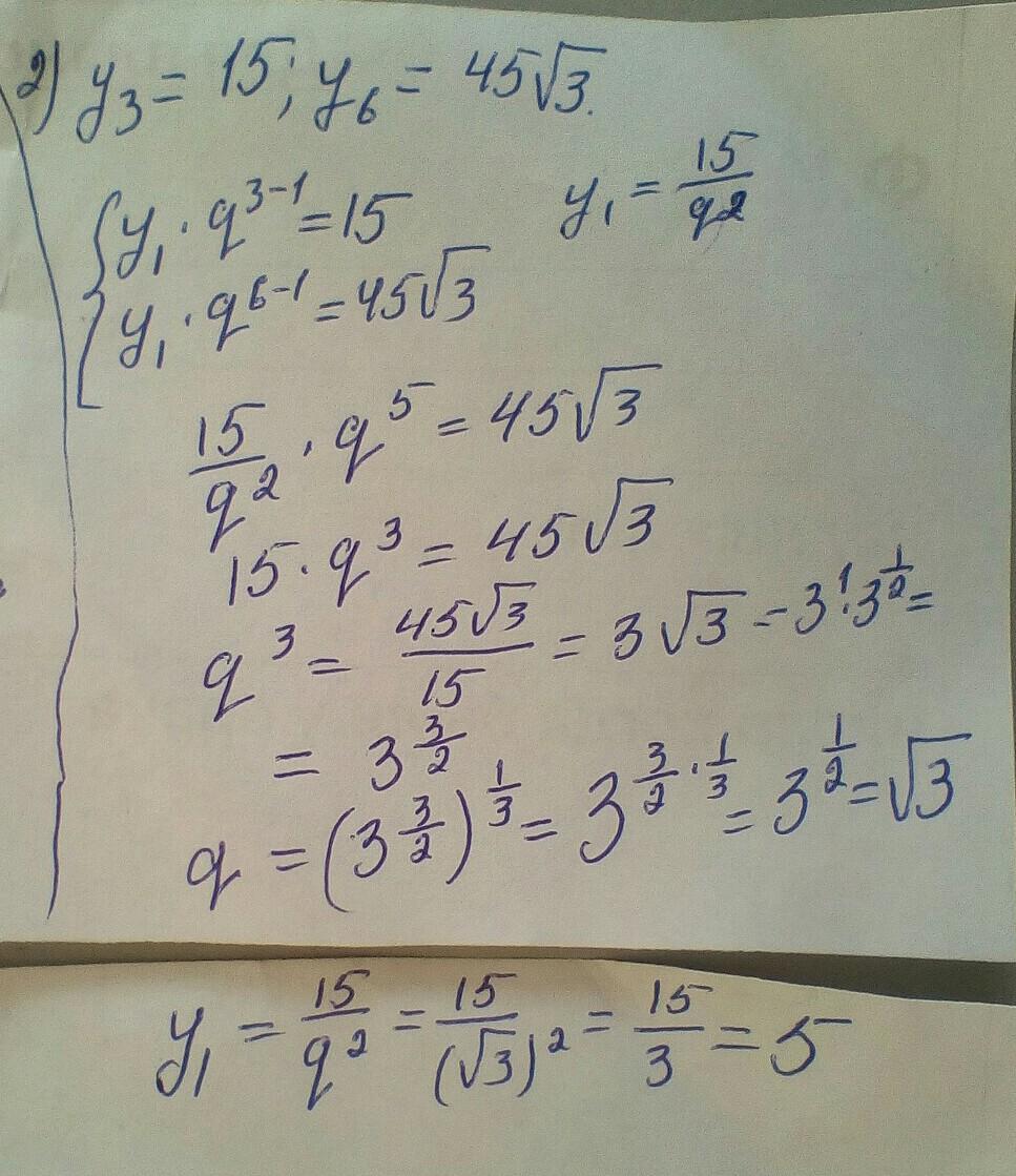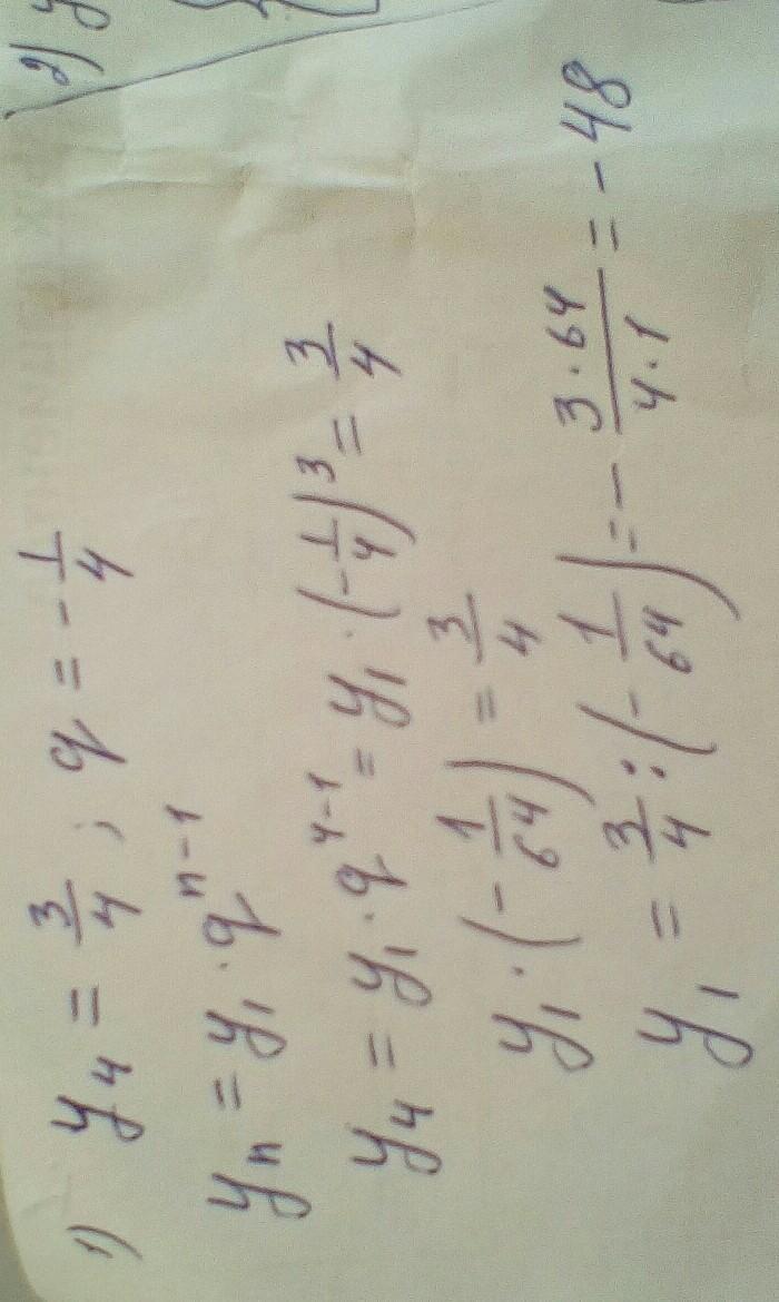 Знайдіть перший член геометричної прогресії (yn), якщо 1)y4=3/4, q=-1/4