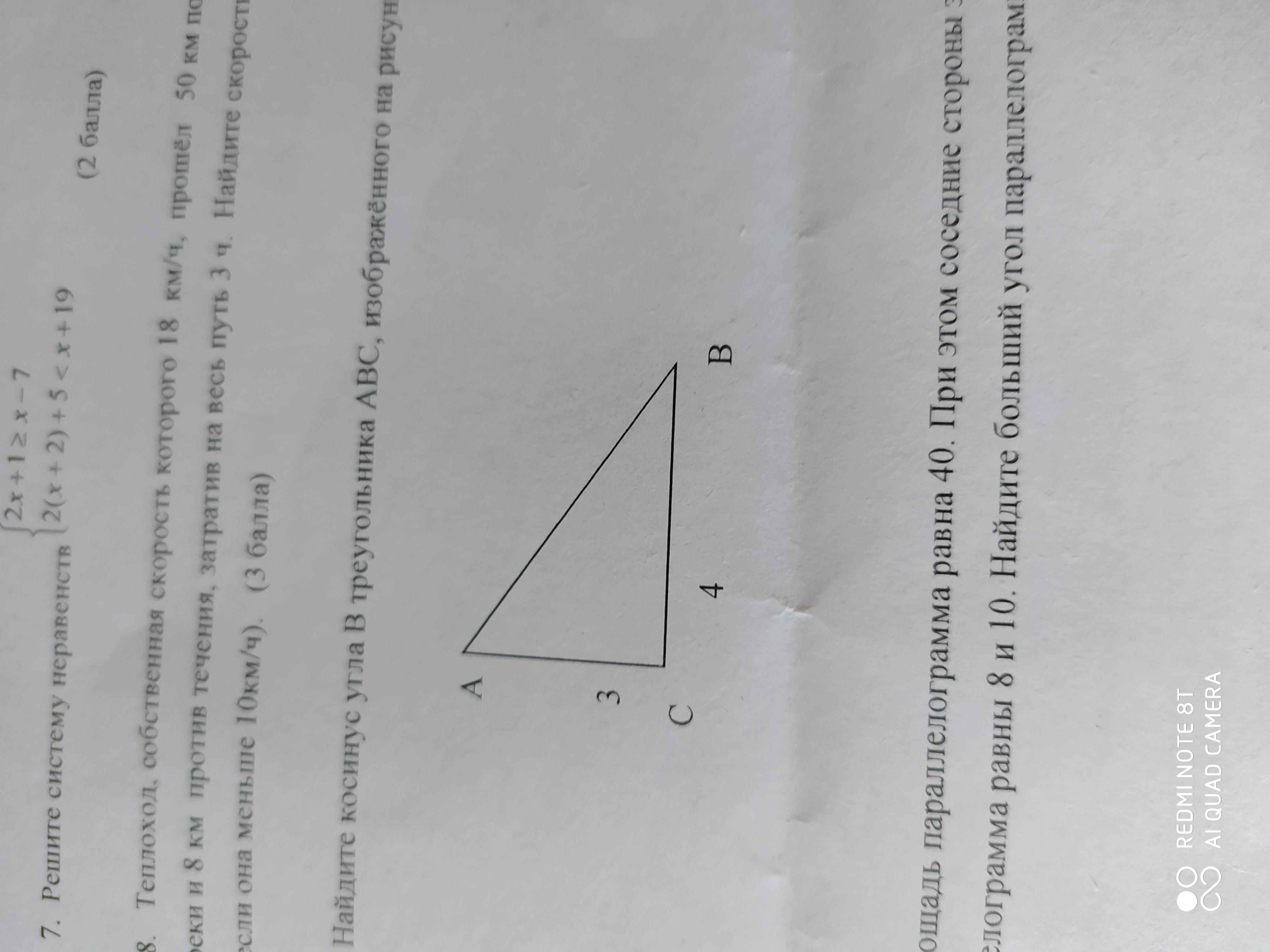 Найдем косинус угла В треугольника ABC:
