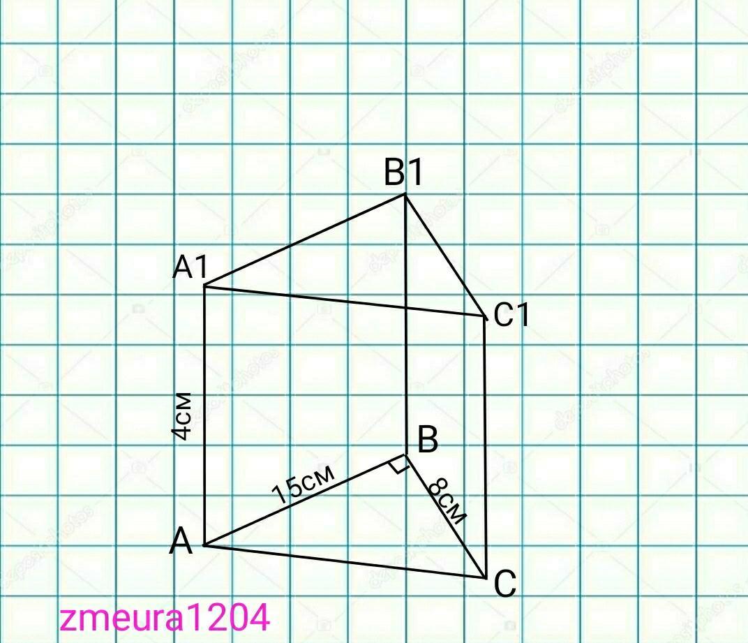 S(∆ABC)=½*AB*BC=½*15*8=60см² площадь основания призмы.