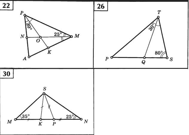 Угол РОN=углу МОК=55°, так как вертикальные углы. Угол РNO=180°-(30°+55°)=95°.