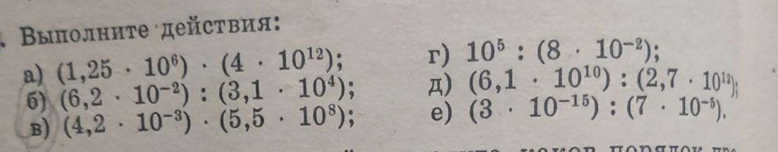 1 . б ) ( 6,2*10⁻² ) : ( 3,1*10⁴ ) = ( 6,2*10⁻² ) / ( 3,1*10⁴ ) = (6,2 : 3,1 )*( 10⁻²⁻⁴ ) =