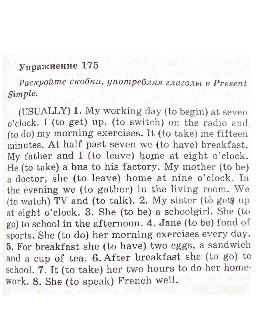 1 Begins,get up,switch,do,takes,have, leave,takes,is,leaves,gather,watch,talk.