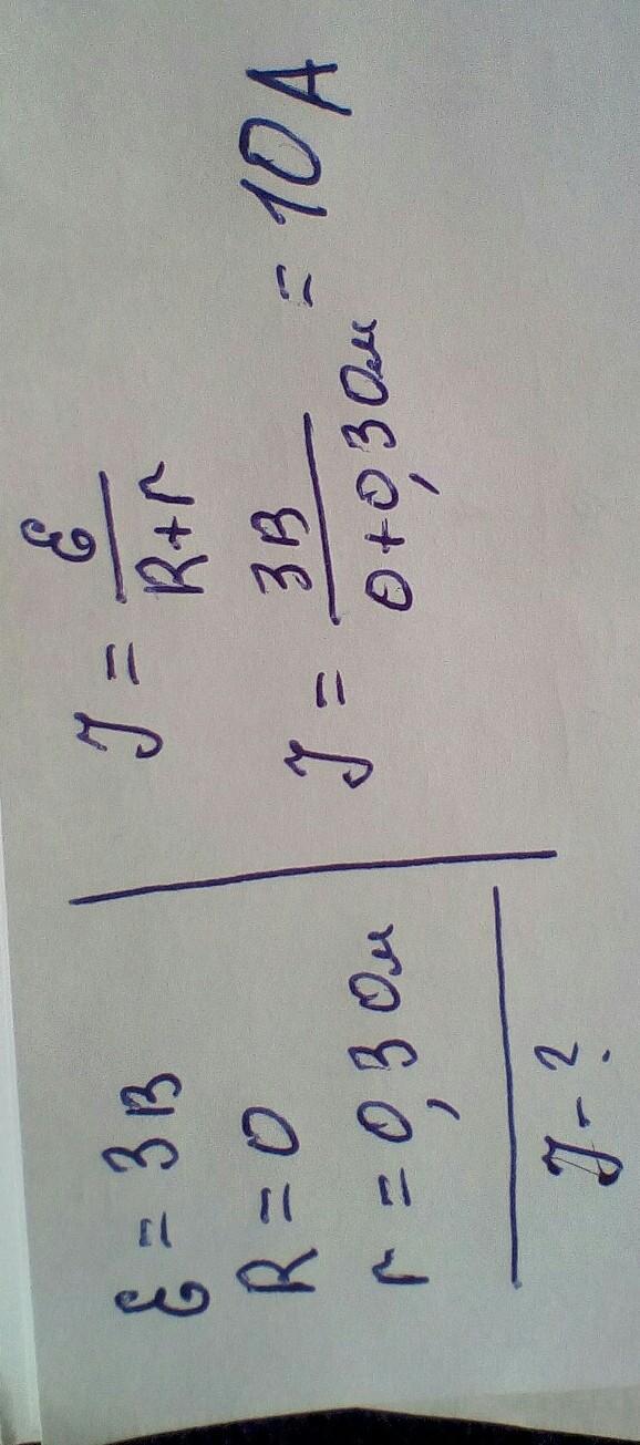 Провідник підключений до джерела живлення з ерс 3В . Визначити силу струму короткого замикання, якщо внутрішній опір r=0.3 Ом