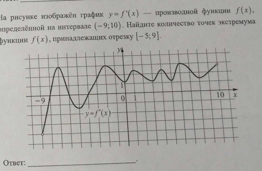 Экстремум - точка, в которой производная функции равна 0(меняет знак либо с "+" на "-", либо с "-" на "+"). На отрезке [-5;9] такая точка только одна - точка с координатой х=-4.