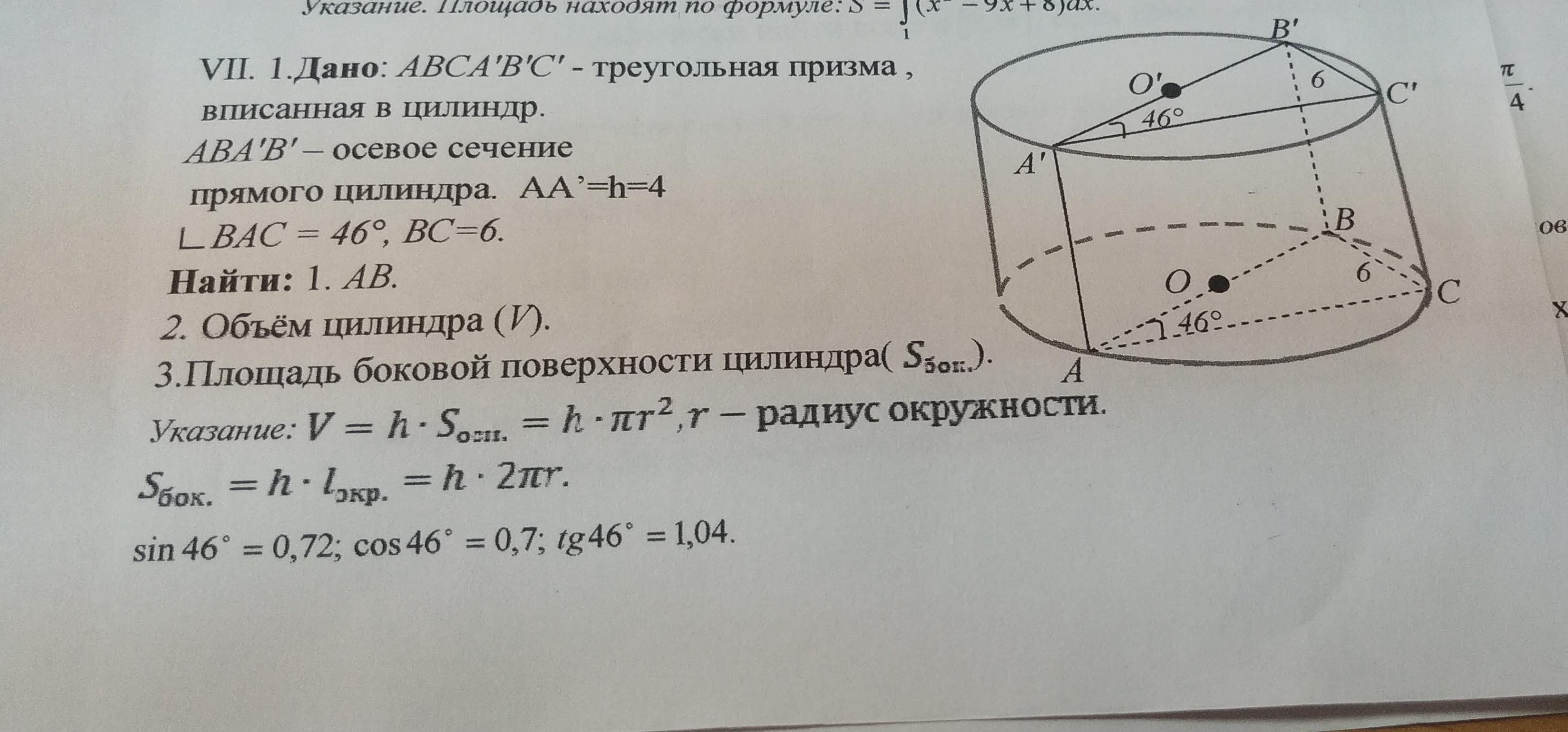 AB=6/0,72=8цел1/3 диаметр цилиндра.