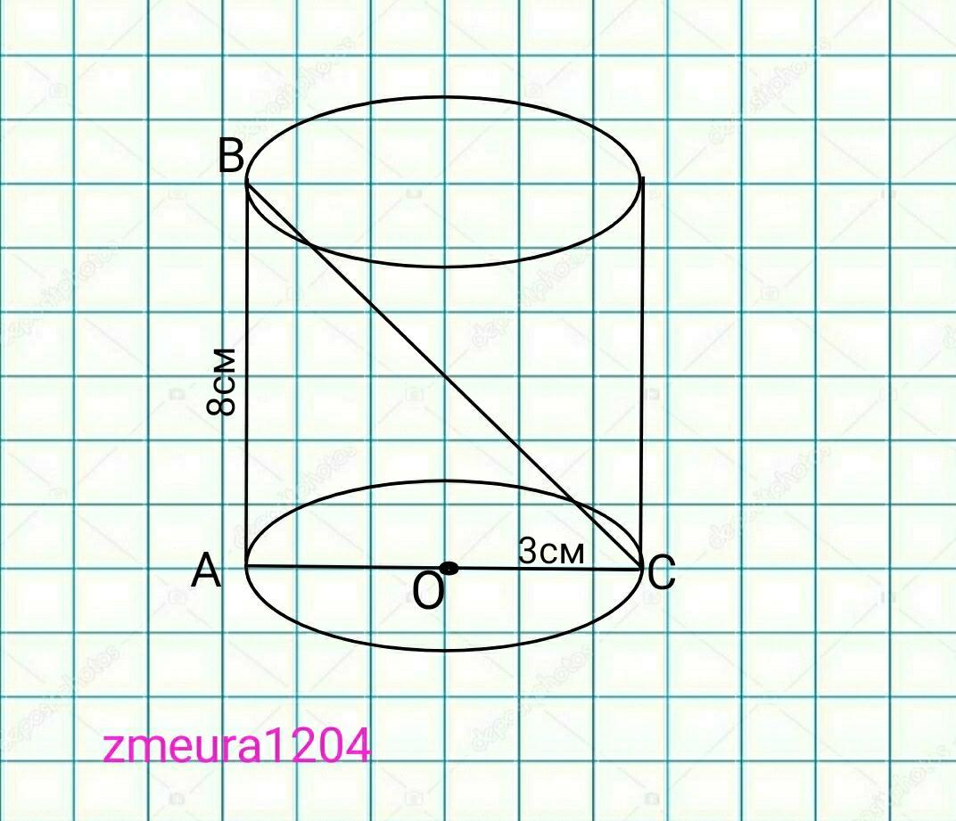 Радиус основания цилиндра равен 3 см, образующая 8 см. Найдите диагональ осевого сечения: