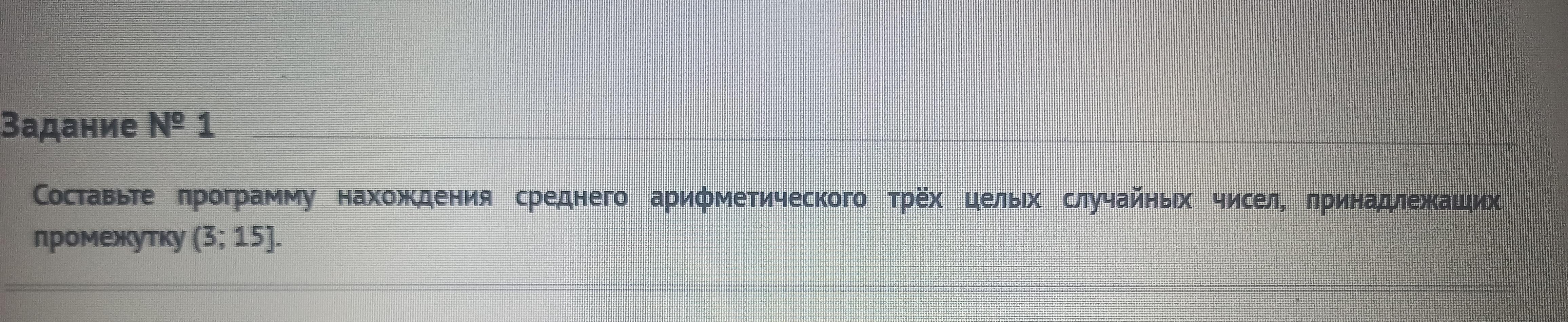 Программа ищет среднее арифметическое трех случайных чисел из заданного промежутка: