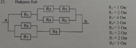 R₁₂₃₄₅₆₇₈=R₁₂₃₄₅*R₆₇₈/(R₁₂₃₄₅+R₆₇₈)=2 Ом