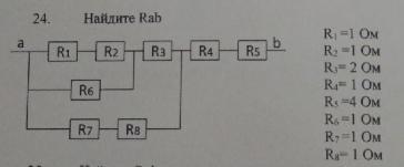 R₁₂₃₄₅₆₇₈=R₁₂₃₆₇₈+R₄+R₅=43/7 Ом