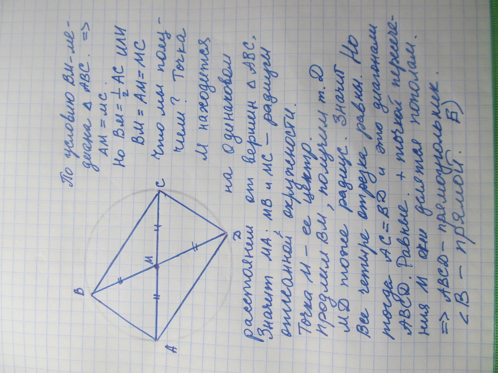 Якщо медіана ВМ трикутника АВС дорівнює половині сторони АС, то кут В… А) гострий; Б) прямий; В) тупий; Г) не можна визначити.