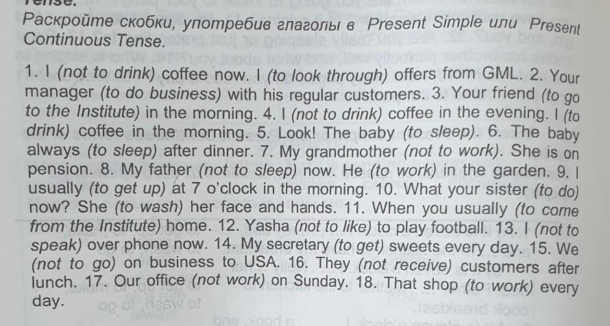 1. 1 (not to drink) coffee now. I (to look through) offers from GML. 2. Your