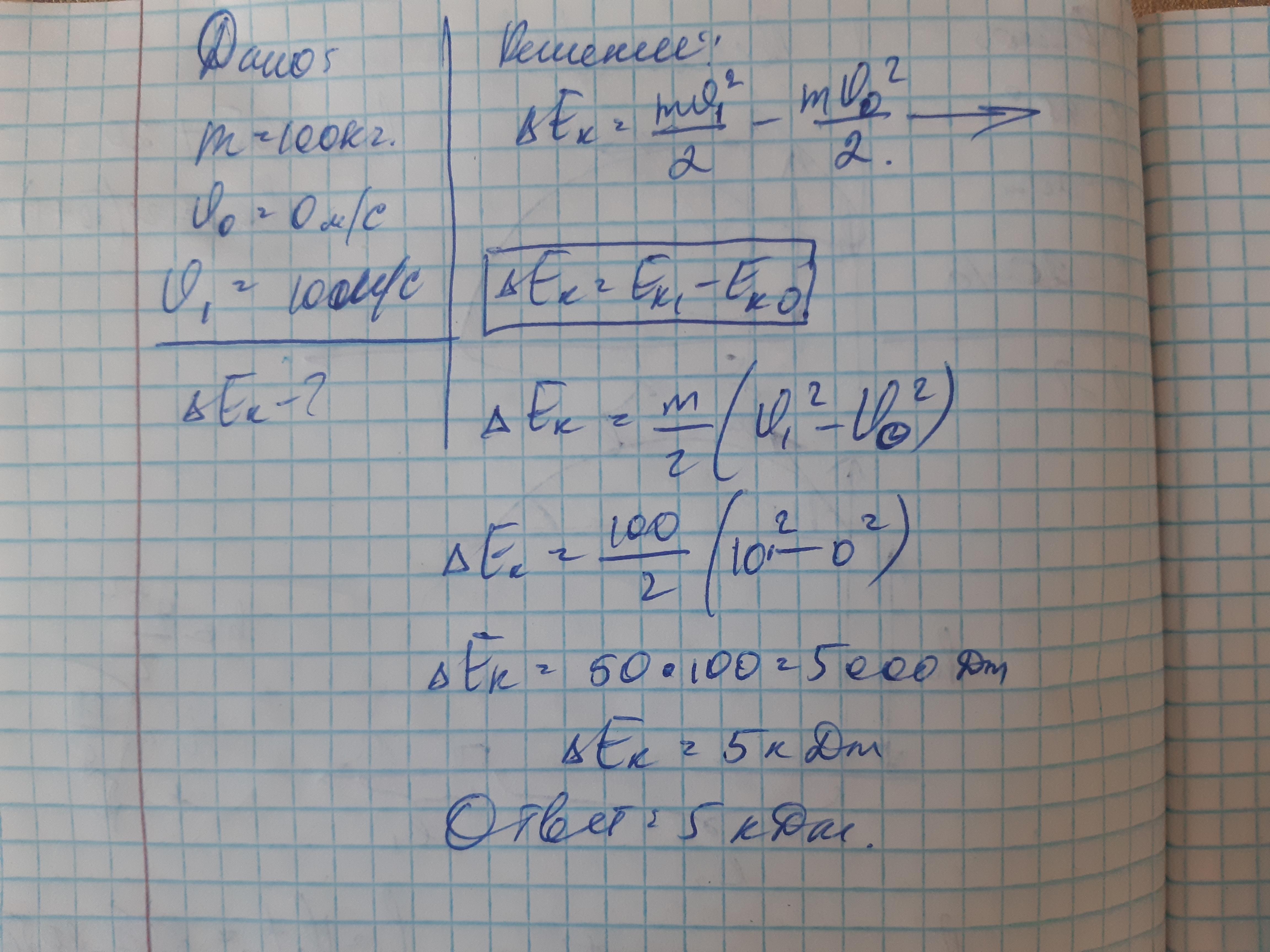 Найти кинетическую энергию тела . Масса тела 100 кг. Скорость вначале движения 0 Скорость движения тела 10 м / с