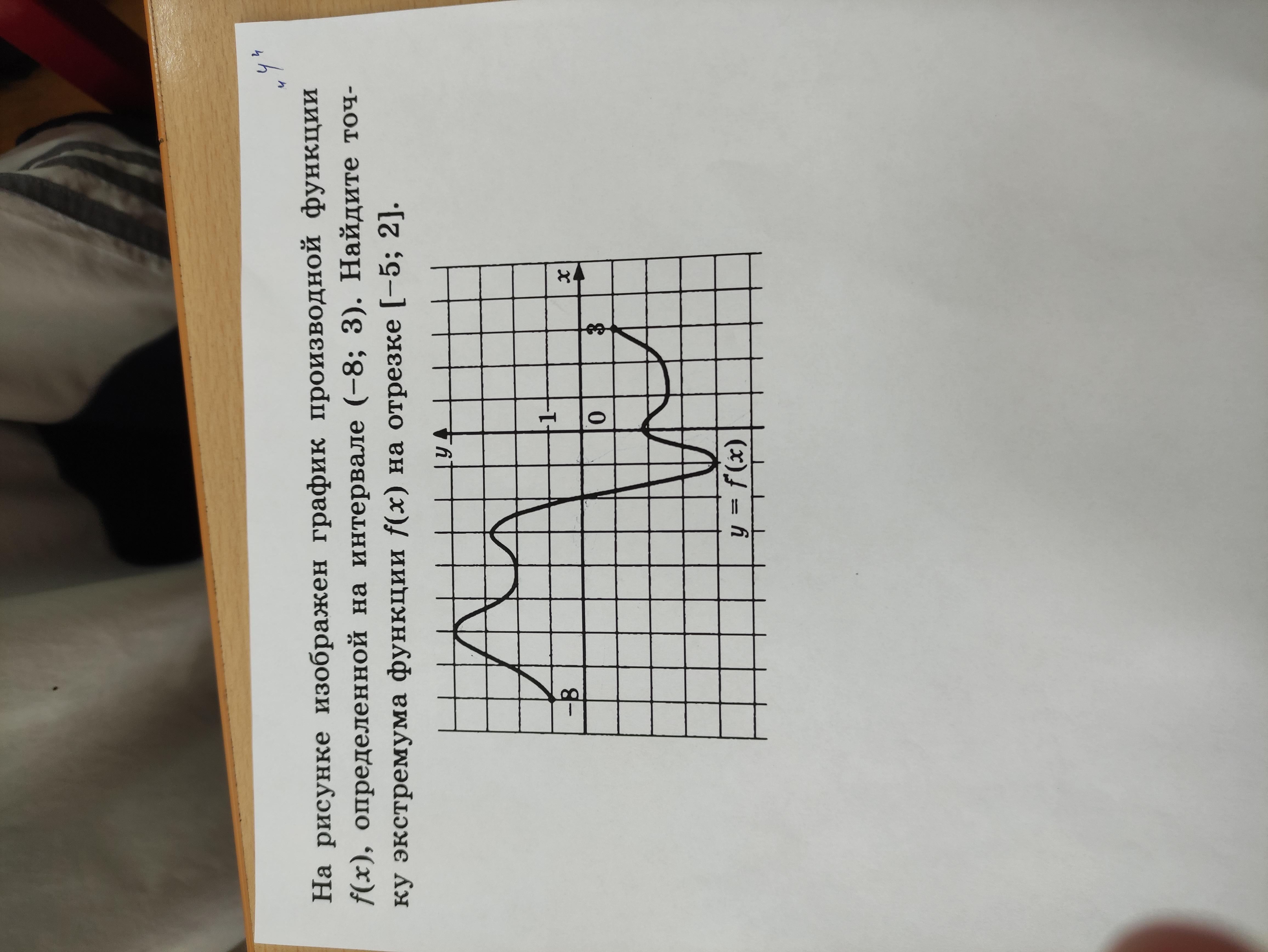 На отрезке [–5; 2] график производной пересекает ось абсцисс, производная меняет знак с с плюса на минус. Следовательно,