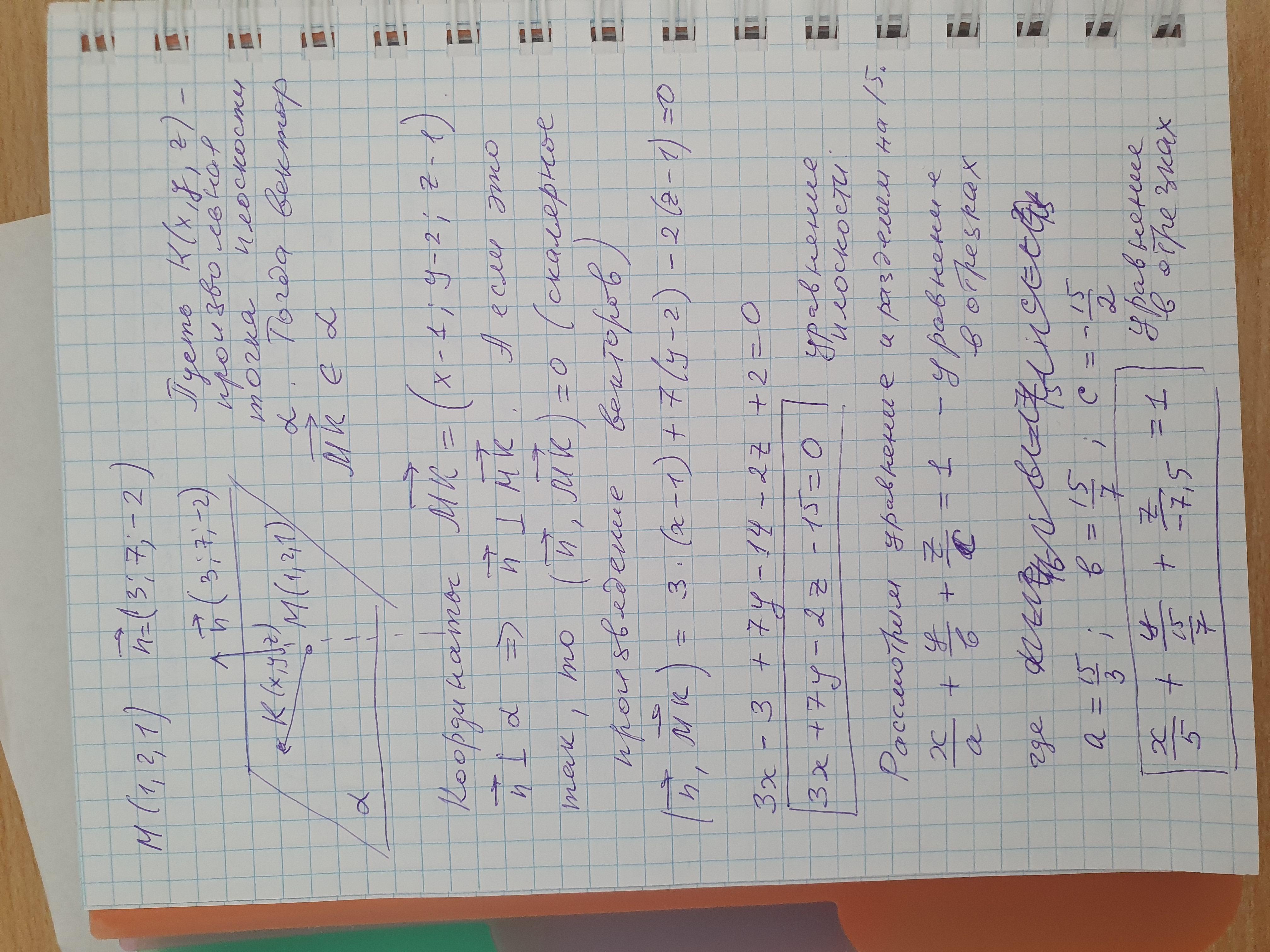 4. Общее уравнение плоскости 3x + 7y - 2z -15 =0