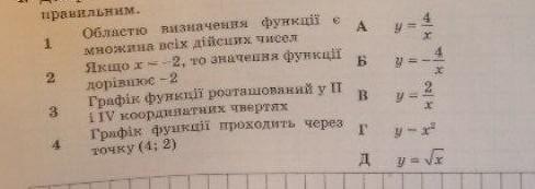 доберіть до кожного твердження (1-4) ту функцію (А-Д) для якої це твердження є правильним