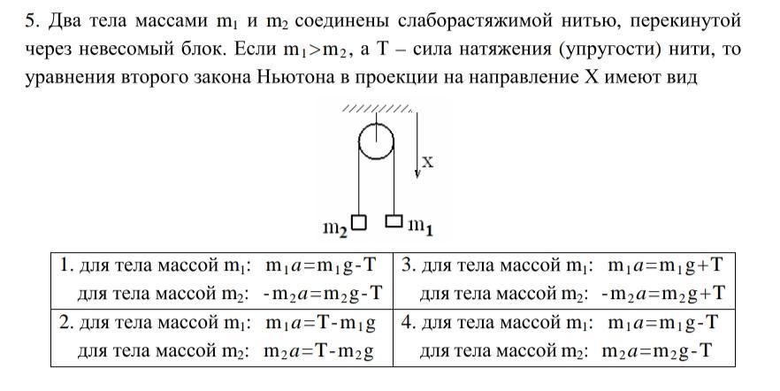 Два тела массами m1 и m2 соединены слабо растяжимой нитью, перекинутой через невесомый блок. Помогите пожалуйста