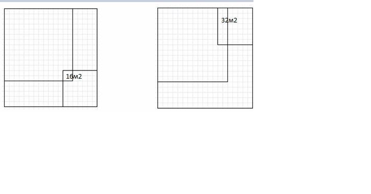 В квадратной комнате стелили линолеум. Причем было 2 квадратных куска, сторона одного из них была в 4 раза больше стороны другого. Если положить эти куски в противоположных углах комнаты, то площадь, накрытая обоими кусками, составила 16 кв.м, если же положить их в соседние углы (вдоль одной стороны), то 32 кв.м. Какова длина стороны комнаты?