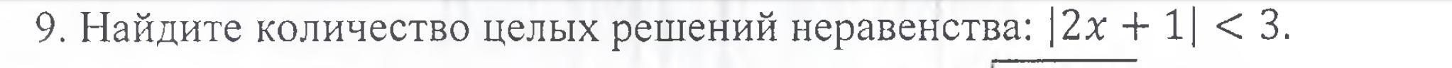 Получается наш ответ -2<x<1,но т.к. наше неравенство строгое и нам нужно количество целых решений,то нашим окончательным ответом будет 2(это целые числа -1 и 0)