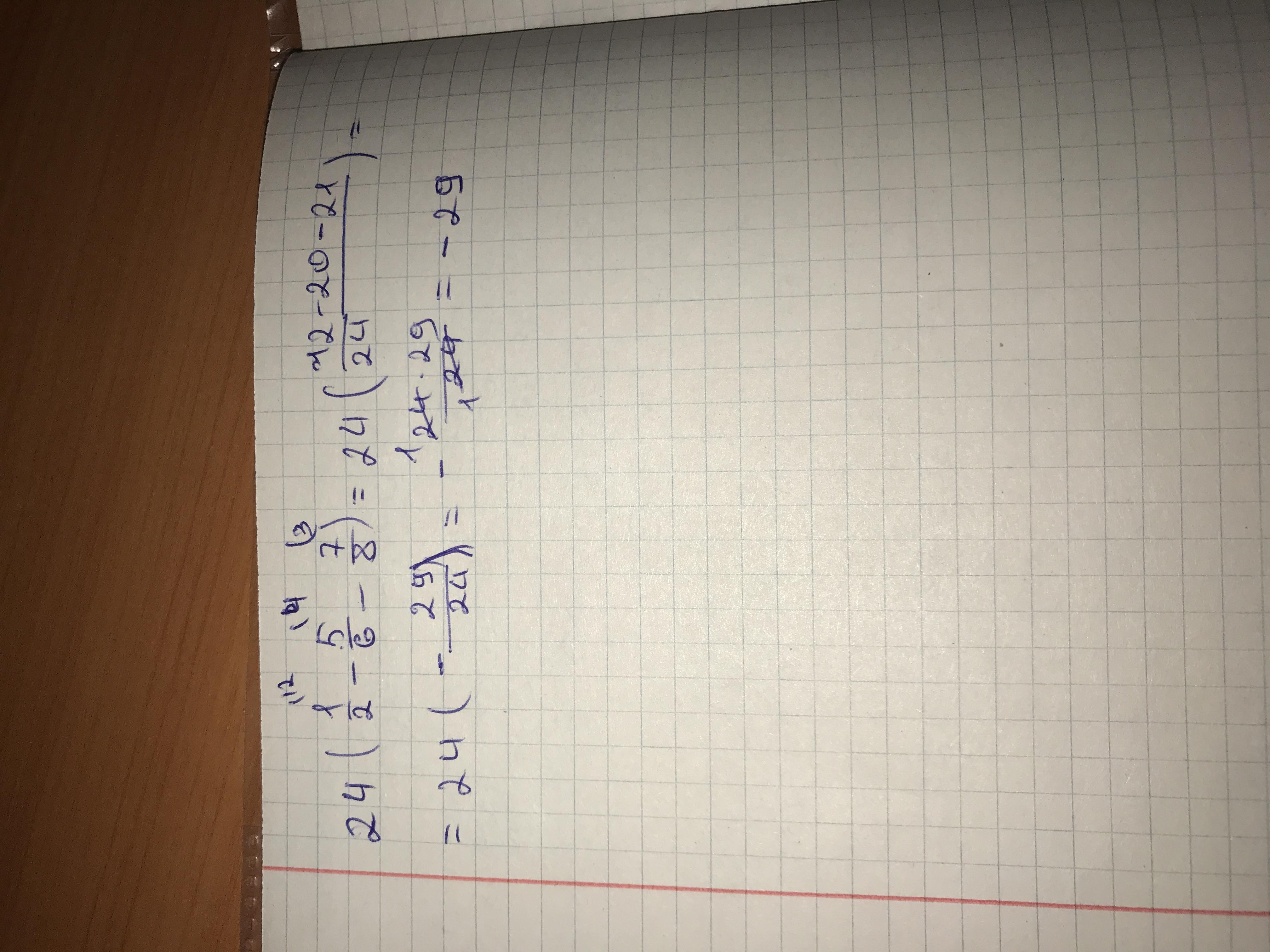 1) 1/2 - 5/6 - 7/8 = 12/24 - 20/24 - 21/24 = -29/24