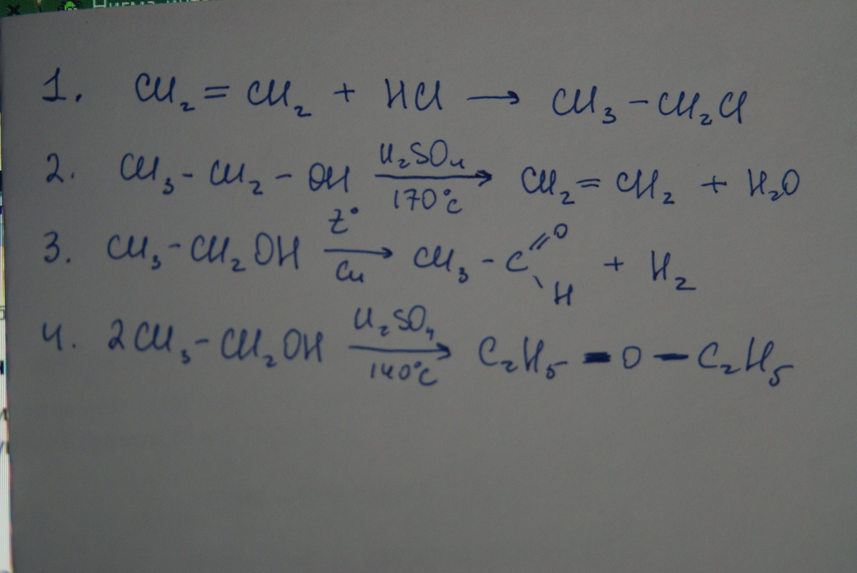 CH3-COH ← CH3-CH2-OH → CH3-CH2-O-CH2- CH3