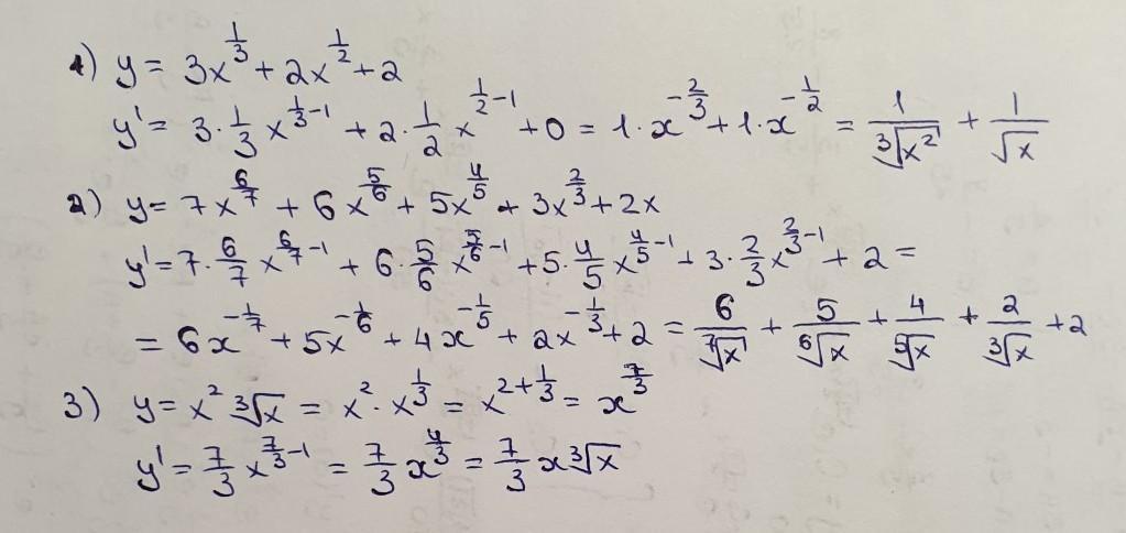 Найти производную сложной функции 10-11 класс, пожалуйста помогите, подробно, 3 примера