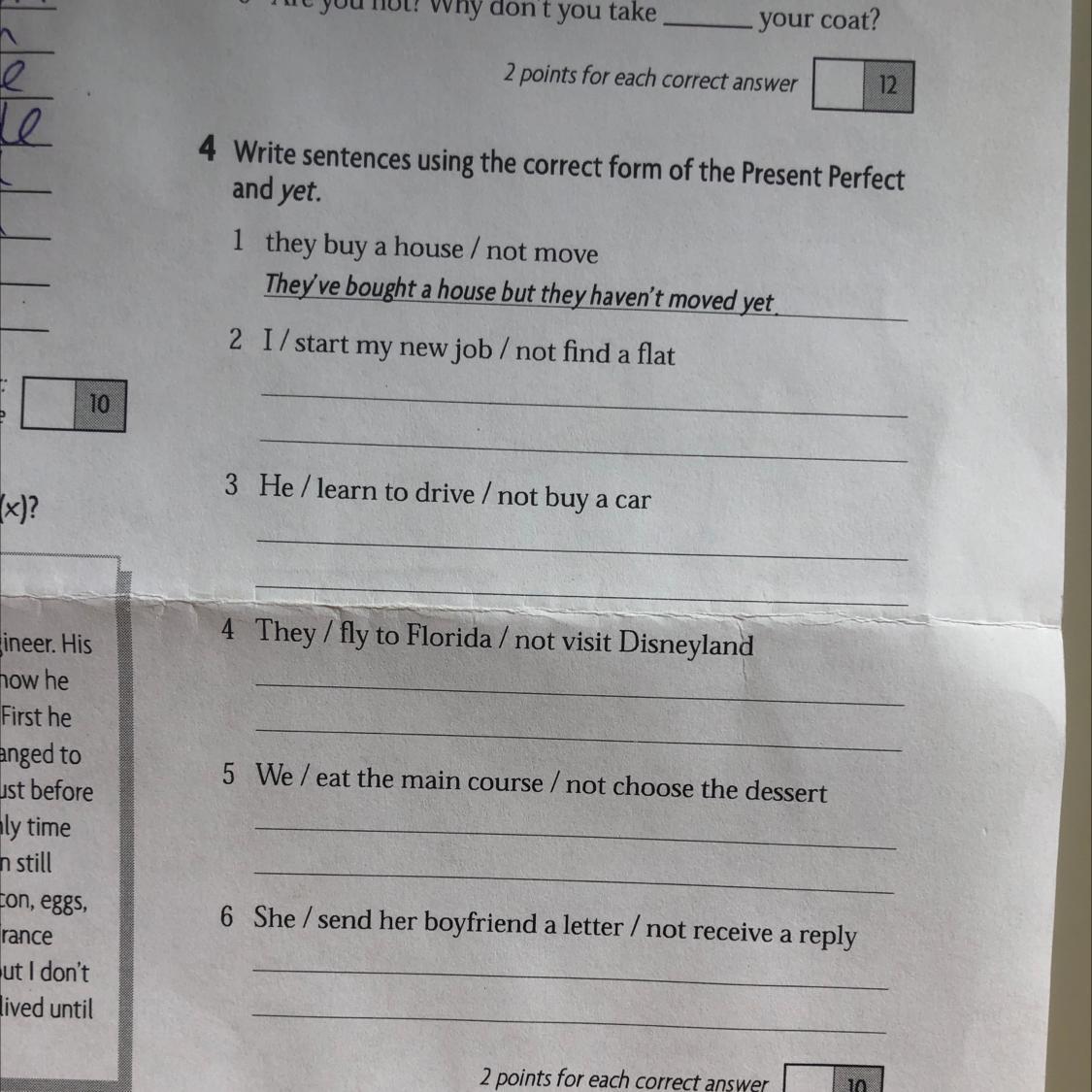 4)They have flown to Florida but they haven’t visited Disneyland.