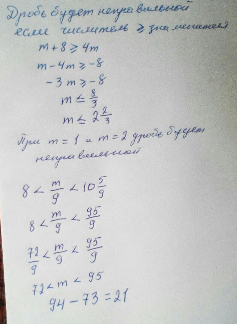 m + 8 ≥ 4m → 3m ≤ 8 → m ≤ 8/3 → m ≤ 2⅔