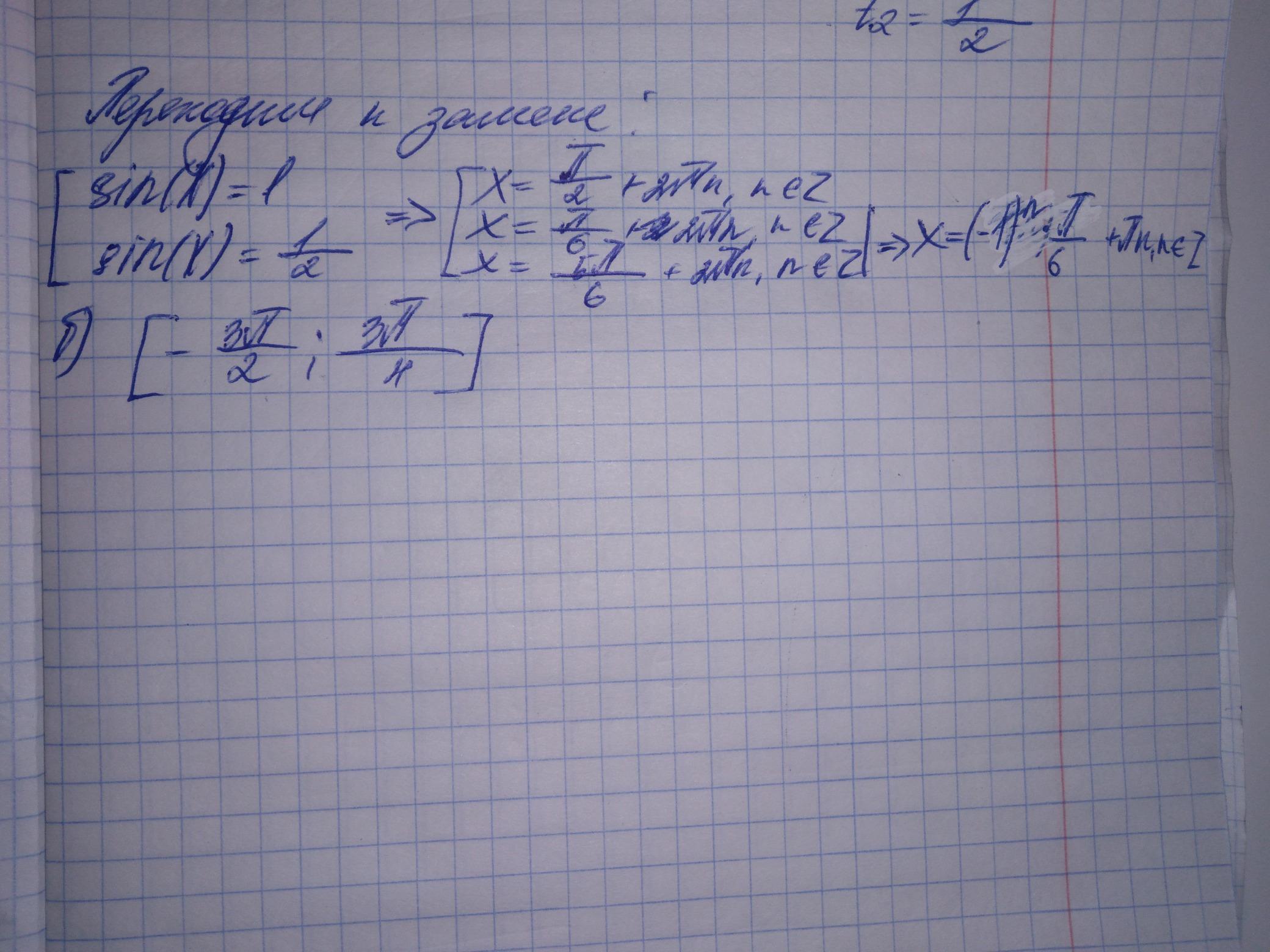 Ответ: x={ -3π/2; π/2; π/6; -7π/6; 5π/6}