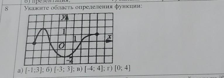 а) (-1;3]; б) (-3; 3]; в) (-4; 4]; г) [0; 4]