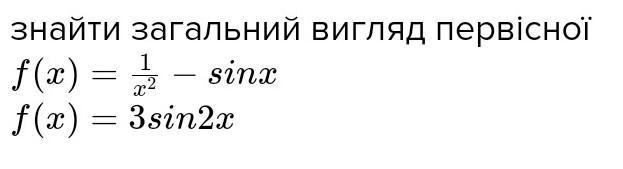 1)\ \ f(x)=\dfrac{1}{x^2}-sinx\\\\F(x)=-\dfrac{1}{x}+cosx+C\ ;\\\\\\2)\ \ f(x)=3\, sin2x\\\\F(x)=-\dfrac{3}{2}\cdot cos2x+C\ ;