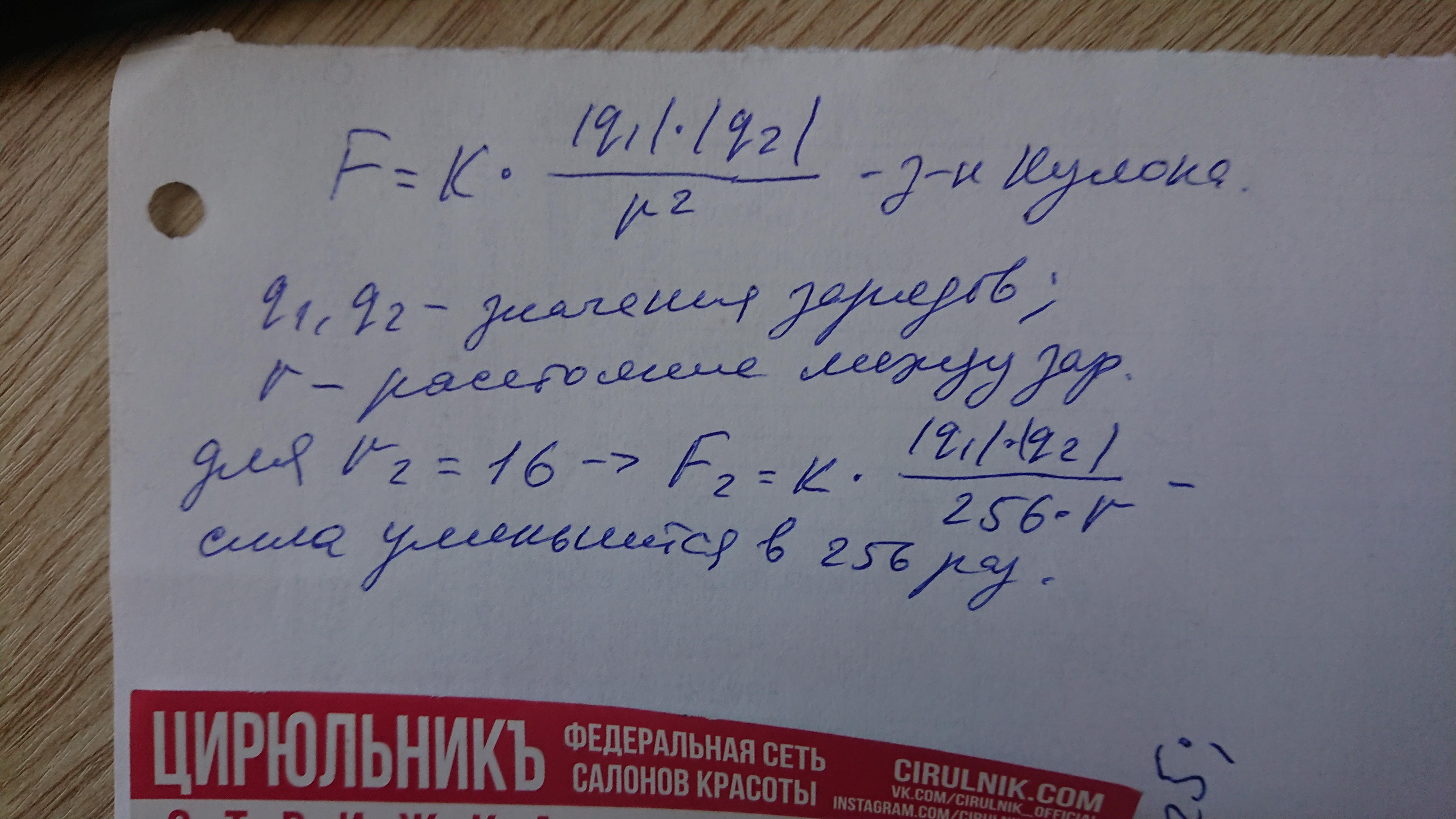 Как изменится сила кулоновского взаимодействия между двумя заряженными частицами, если увеличить расстояние в 16*2 раз? *