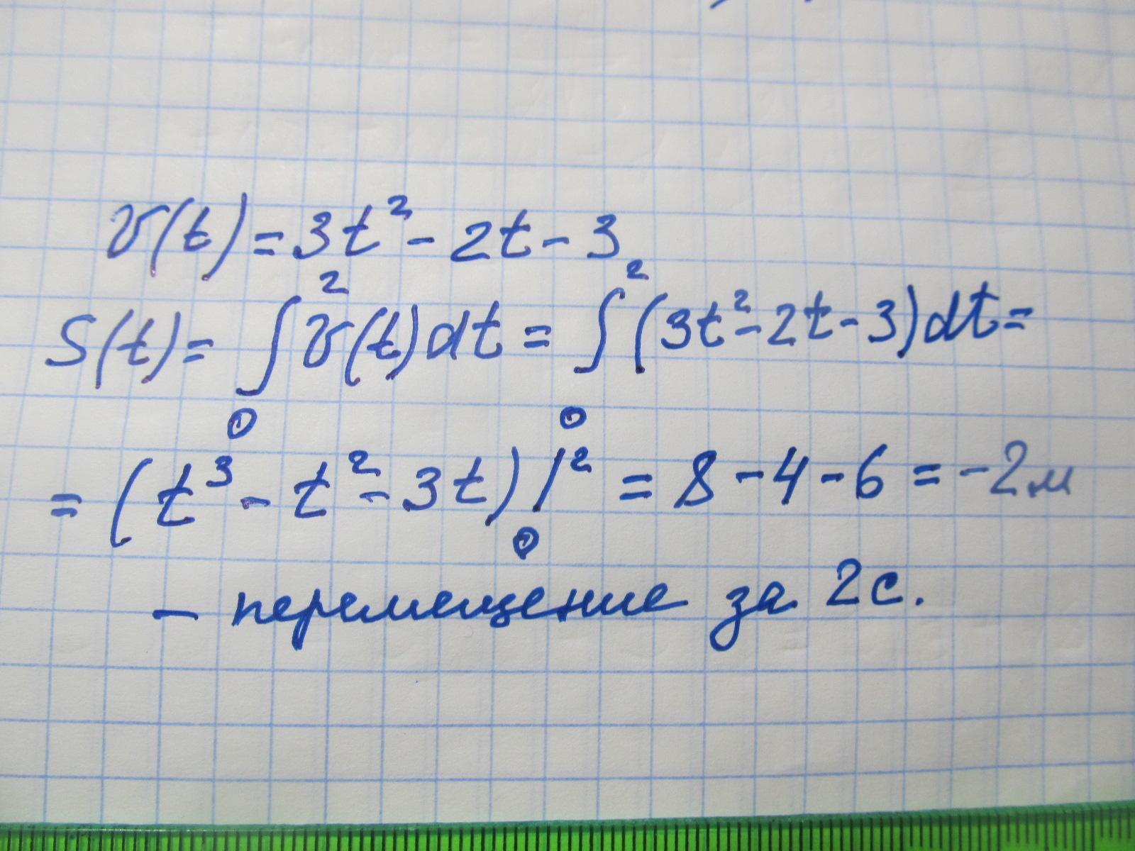 1. скорость движения точки (-3 -2t+3t² ) м / с. найти путь, который прошла точка за 2 секунды от начала движения ? СРОЧЧЧНОООООООООО!!!!!!
