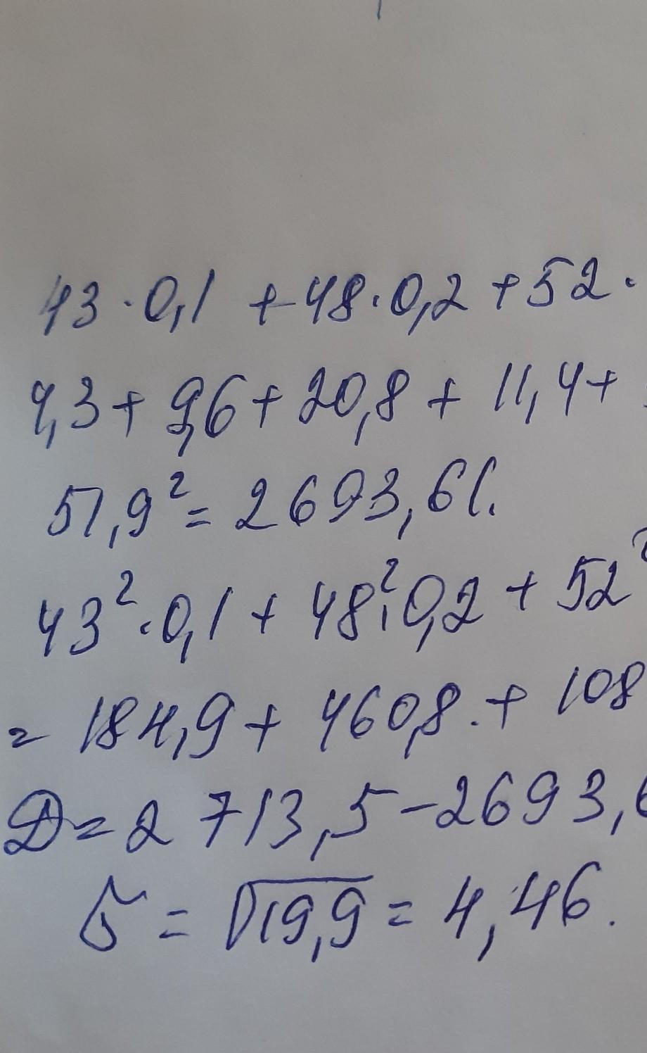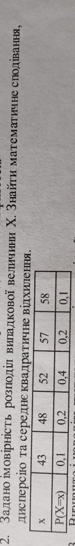 2. Задано імовірність розподіл випадкової величини X. Знайти математичне сподівання, дисперсію та середнє квадратичне відхилення.