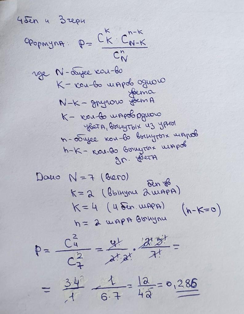 2) Количество способов достать два шара из семи: