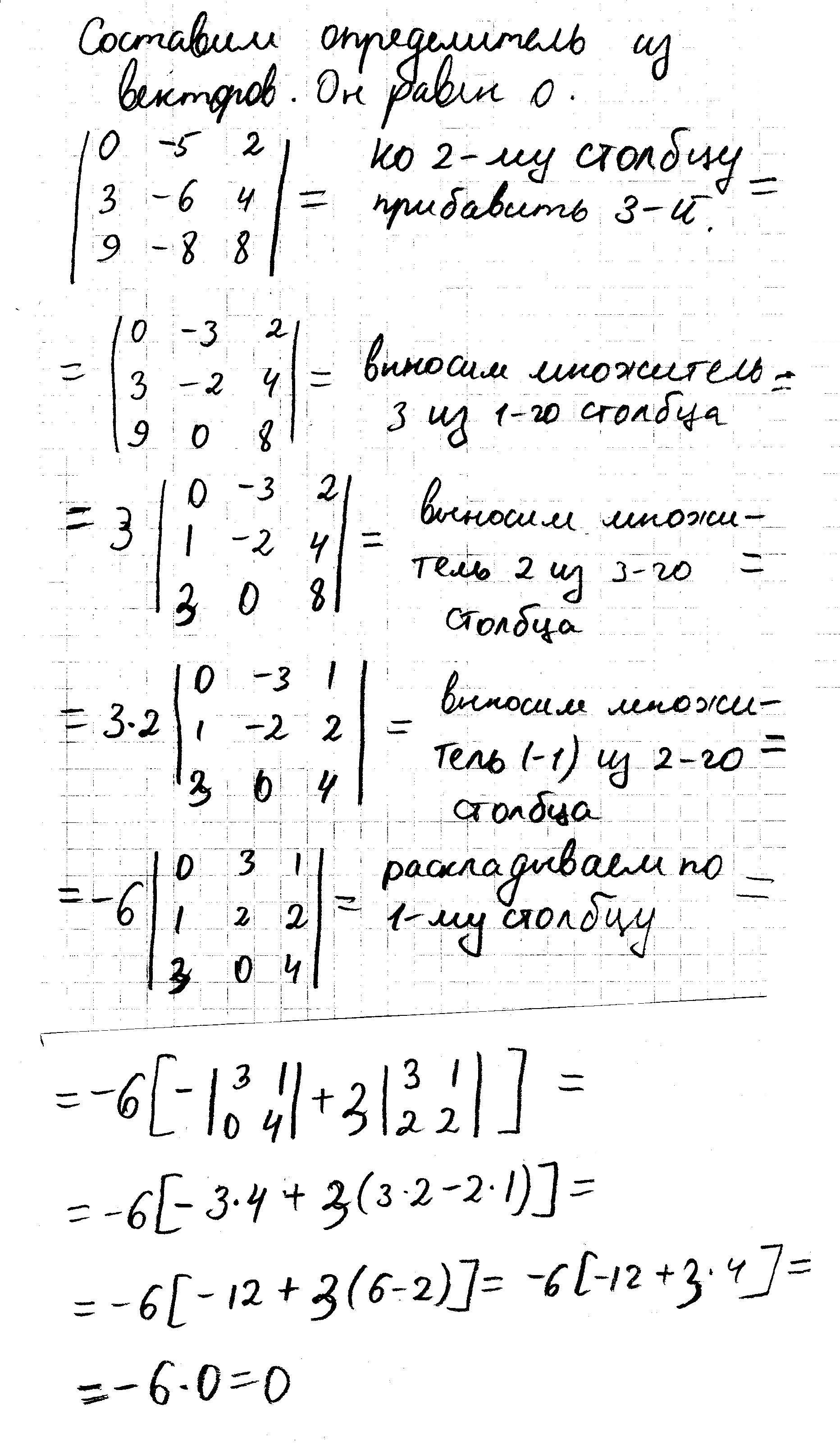 Определитель из этих векторов равен нулю.