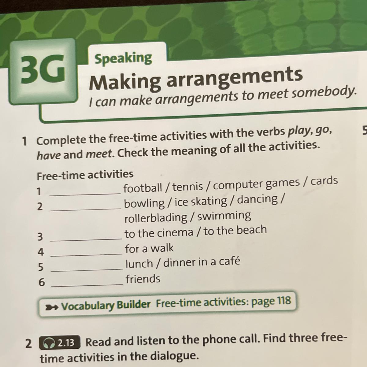 В первом ряду везде Play, во втором, третьем и четвёртом go, в пятом have, и в шестом meet
