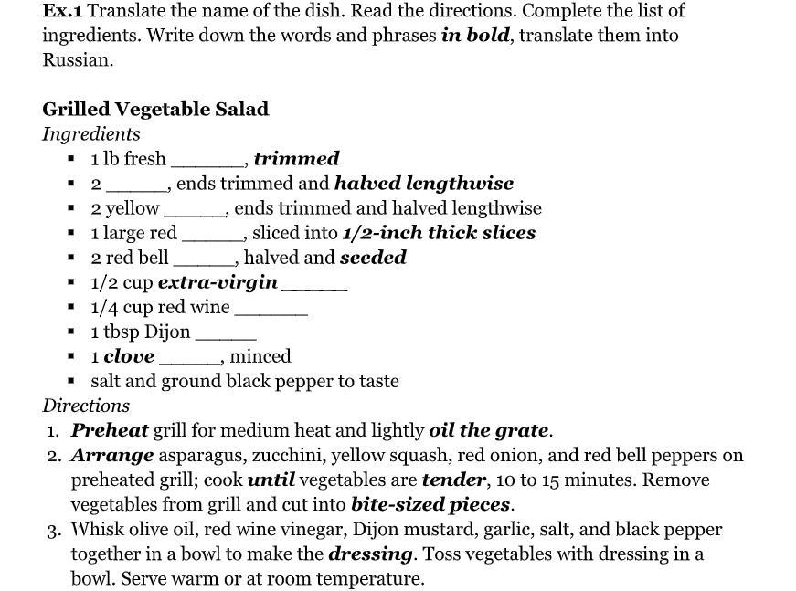 Перевод названия блюда - Салат из овощей на гриле.