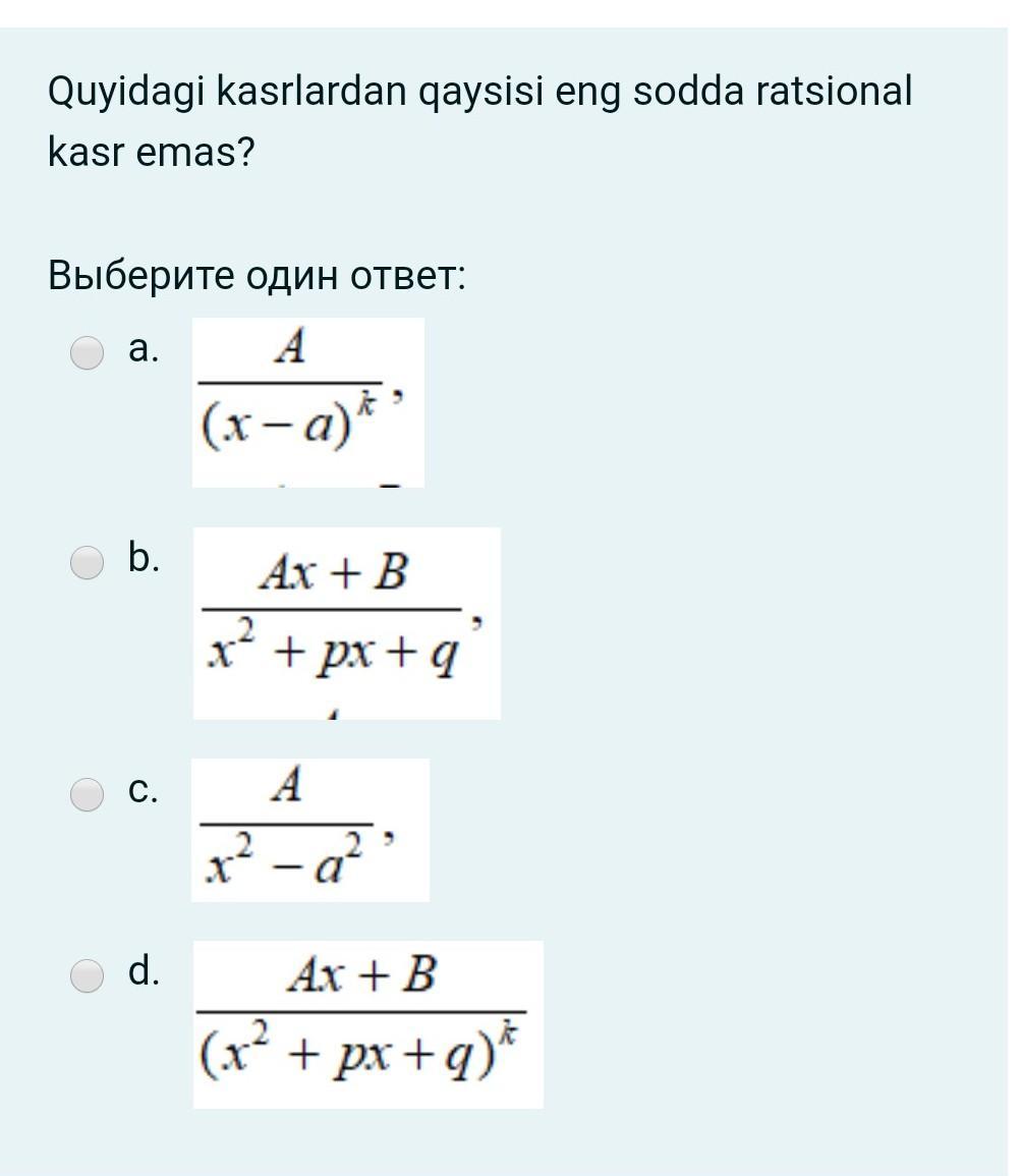 Какая из следующих дробей не является самой простой рациональной дробью?