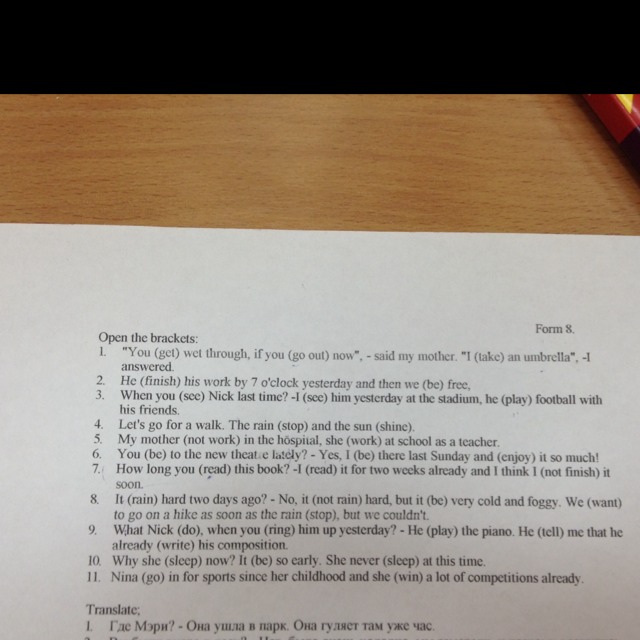 shining 5 doesn’t work, works 6 Have you been, was, enjoyed 7 have you been