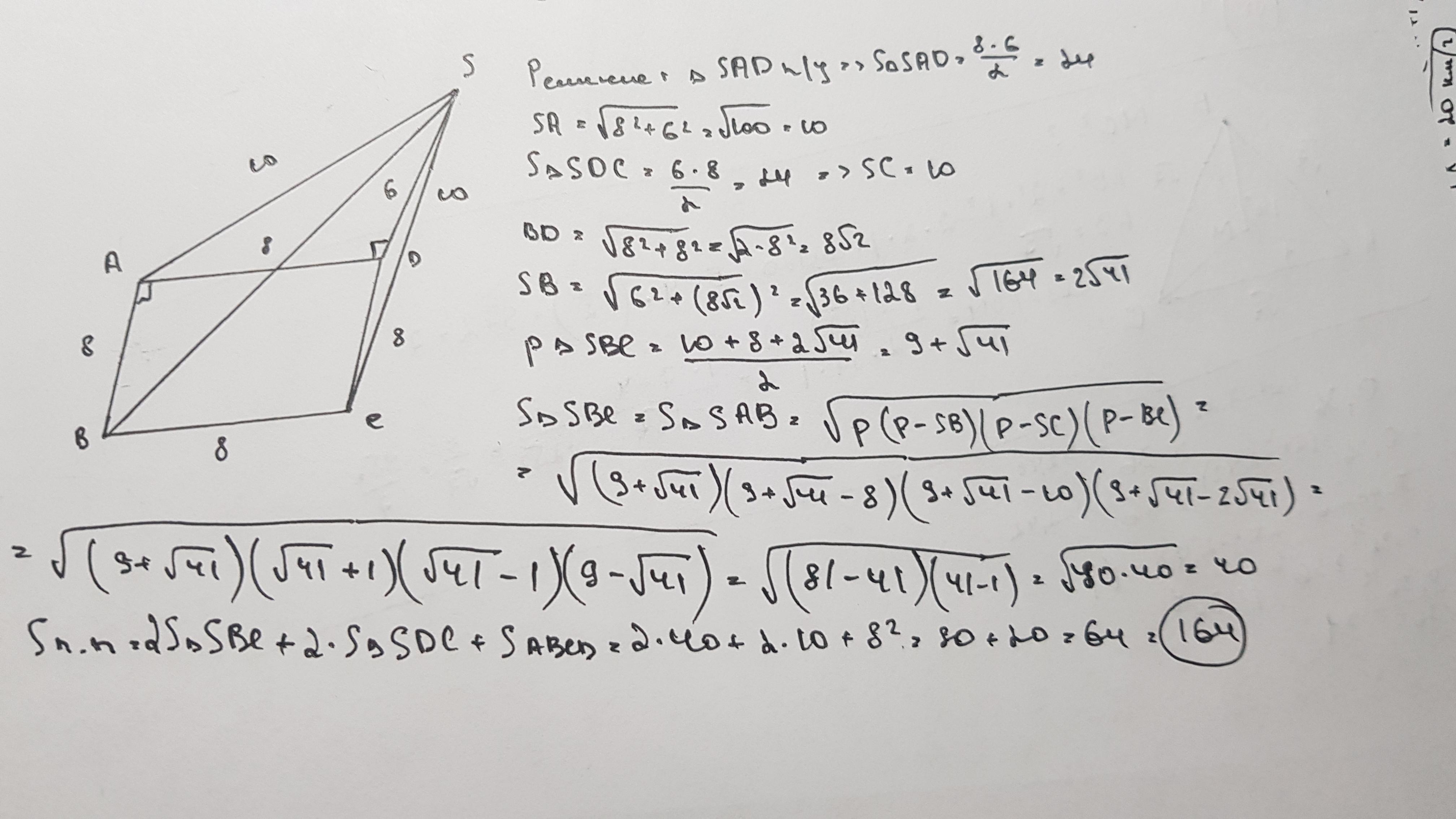 Найдите полную поверхность четырехгранной пирамиды,