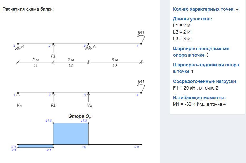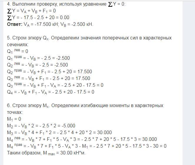 Расчёт поперечных сил и изгибающих моментов для заданной балки приведен в трёх вложениях.