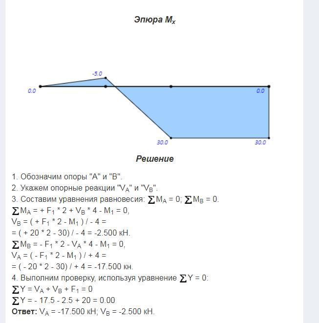 1. Построить эпюры поперечных сил и изгибающих моментов для балки, изображенной на рисунке. Если F=20 кН и М=30 кН∙ м.