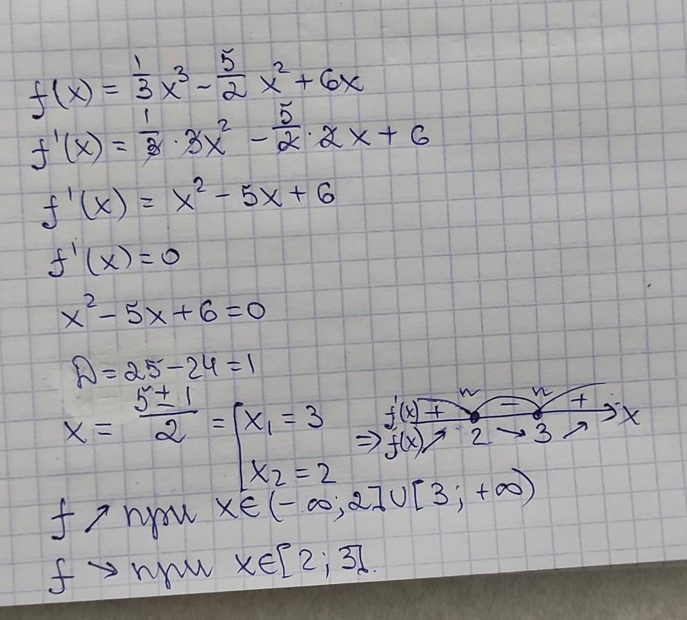 Функция возрастает при х€(-оо;2]U[3;+oo)