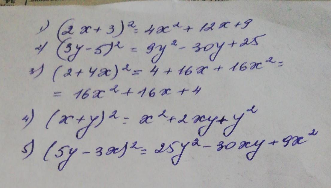 (5y – 3x)² = 25y² – 30yx + 9x²