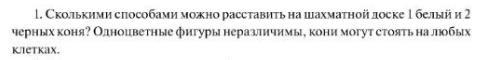 1) посчитаем, сколько вариантов поставить короля и ферзя: они занимают две подряд идущие клетки, всего вариантов 7 * мы можем еще поменять в каждом варианте КФ на ФК, получим еще 7 вариантов итого 7+7 = 14 вариантов расстановки короля и ферэя 2) осталось шесть клеток (3 белые, з черные), поставим слонов: выберем любой цвет - 2 варианта * выберем две клетки из трех - 3 вариантаитого 2*3 = 6 вариантов поставить слонов 3) поставим двух коней * кони не отличаются, т.к. оба белые * выберем из оставшихся четырех клеток две: c} = 6 итого 6 вариантов расставить коней 4) поставим ладьи в оставшиеся клетки итого 1 вариант для ладей в итоге для расстановки всех фигур получим:14 * 6*6*1= 504 (способа) Ответ: 504 способа